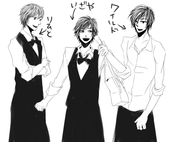 その時点で、「は?」てな感じだったんですが、そのイケメンさん3人組はなぜか、ギャルソンの服装を着ておりまして、なに、それ?わざとなの?ってくらいカッコイイんすよ。もともと120%イケメンなのにギャルソン服を着て200%イケメンくらいにパワーアップしてるんですよ。