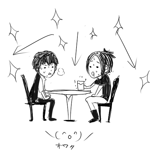 なんか、横のテーブルがきれいに店員さんに片づけられて、あれ、もしかして?って思ったとたんに、今まで遠目でチラ見してたイメメン3人組が座ったんです。